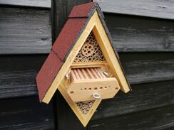 Wenn Sie auch auf meiner Webseite gelegentlich den Begriff >> HOTEL << finden, dann ist das allein der Tatsache geschuldet, dass die meisten Menschen gerade dieses (Un-)Wort bei Ihrer Googlesuche verwenden. Leider hat sich dieser Begriff in den Medien unausrottbar etabliert und kennzeichnet gerade das Falsche. Der Begriff HOTEL im Zusammenhang mit Wildbienen ist natürlich absoluter Unsinn. Die Bienen kommen ja nicht mit Köfferchen für Übernachtung mit Frühstück, auch nicht für den Urlaub, sondern sie mauern, tapezieren, legen Vorrate an und bekommen dort ihre Kinder und diese wohnen dort ein ganzes Jahr.